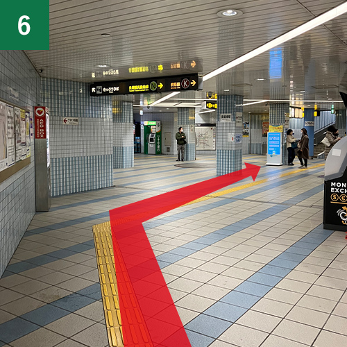 上がると長堀橋駅改札に到着します。そのまま直進し奥の1番出口に向かいます。